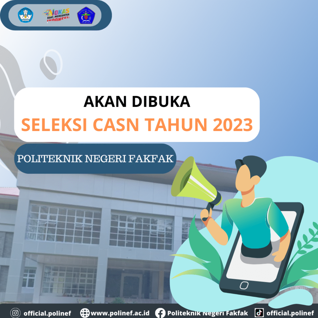 Mari bergabung bersama Politeknik Negeri Fakfak dalam selesi CASN Tahun 2023. Cek detail dan jadwalnya di website Politeknik Negeri Fakfak. See you ! #polinef #politekniknegerifakfak #centreofexcellence