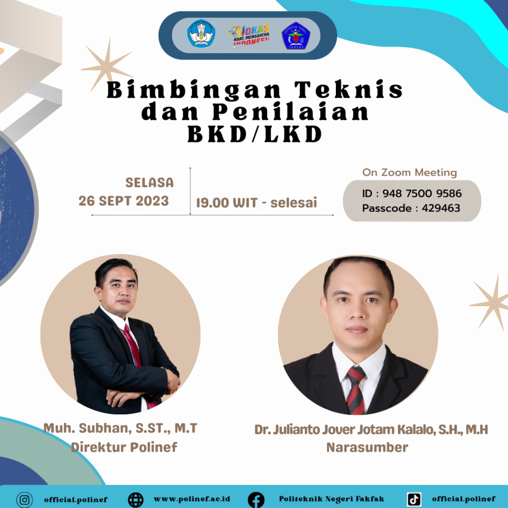 Fakfak, September 2023 – Sebagai bentuk tridharma Perguruan Tinggi para tenaga pendidik, salah satunya di Politeknik Negeri Fakfak adalah dengan melakukan pengabdian kepada masyarakat. Salah satu upayanya yaitu untuk peningkatan tata bahasa inggris dasar pada siswa yaitu dengan sosialisasi aplikasi English Grammar Learning berbasis Android. Kegiatan ini telah dilaksanakan pada tanggal 26 dan 29 September […]