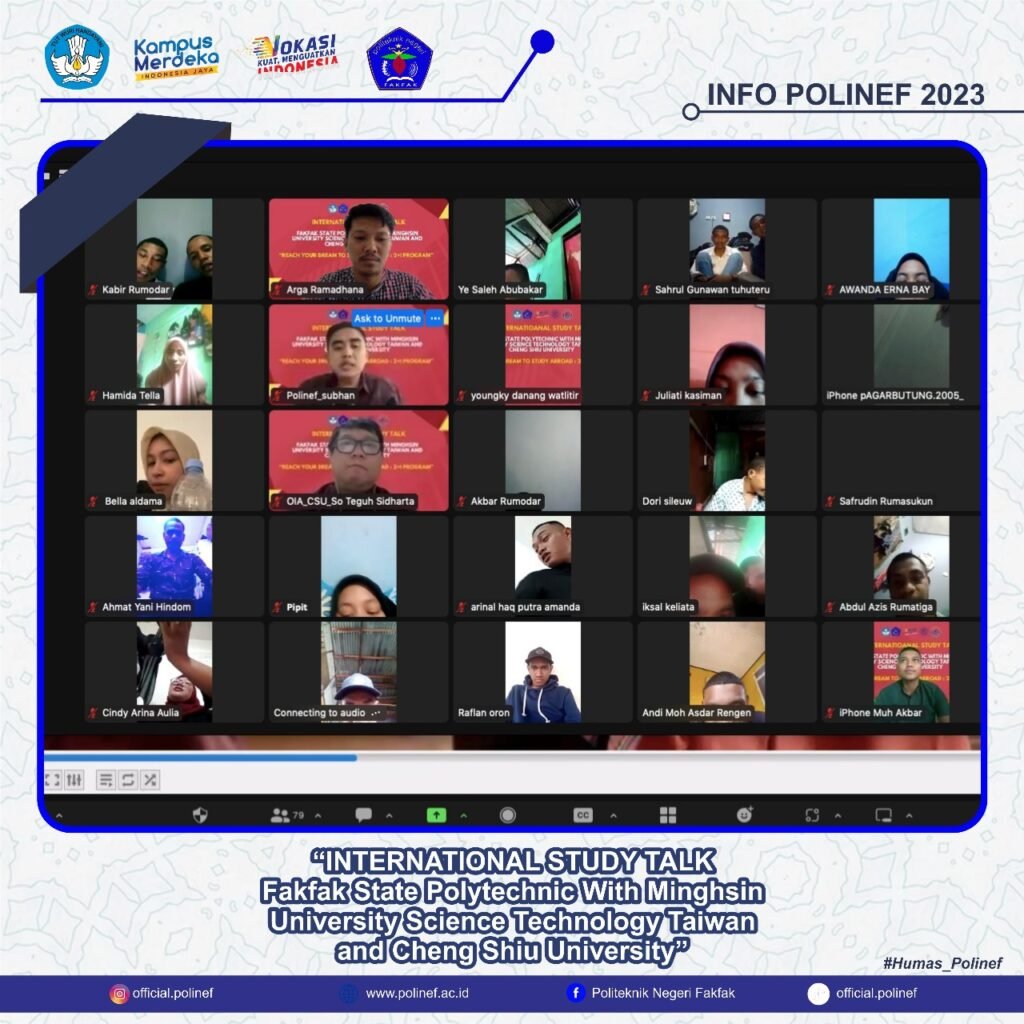 INTERNATIONAL STUDY TALK : Fakfak State Polytechnic with Mingshin University Science Technology Taiwan and Cheng Shiu University Fakfak – Salah satu langkah Polinef untuk terus mendorong mahasiswa agar dapat bersaing dengan dunia internasional adalah dengan mengadakan kegiatan seperti study talk. Kegiatan ini berkolaborasi dengan Mingshin University Science Technology Taiwan and Cheng Shiu University. […]