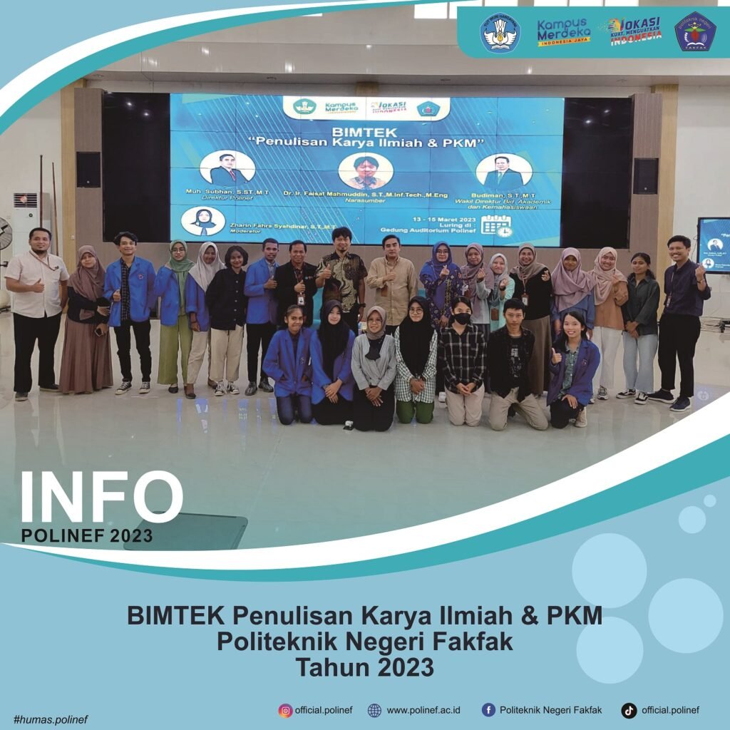 BIMTEK Penulisan Karya Ilmiah & PKM Polinef Tahun 2023 yang diikuti oleh mahasiswa/i perwakilan beberapa jurusan di Polinef, pada kesempatan ini juga Polinef meghadirkan Narasumber Dr. Ir. Faisal Mahmuddin, S.T.,M.Inf.Tech.,M.Eng Karya tulis ilmiah, merupakan gabungan dari tiga suku kata. menurut Kamus Besar Bahasa Indonesia, karya, dapat diartikan sebagai hasil sebuah usaha, upaya, perbuatan atau ciptaan, […]