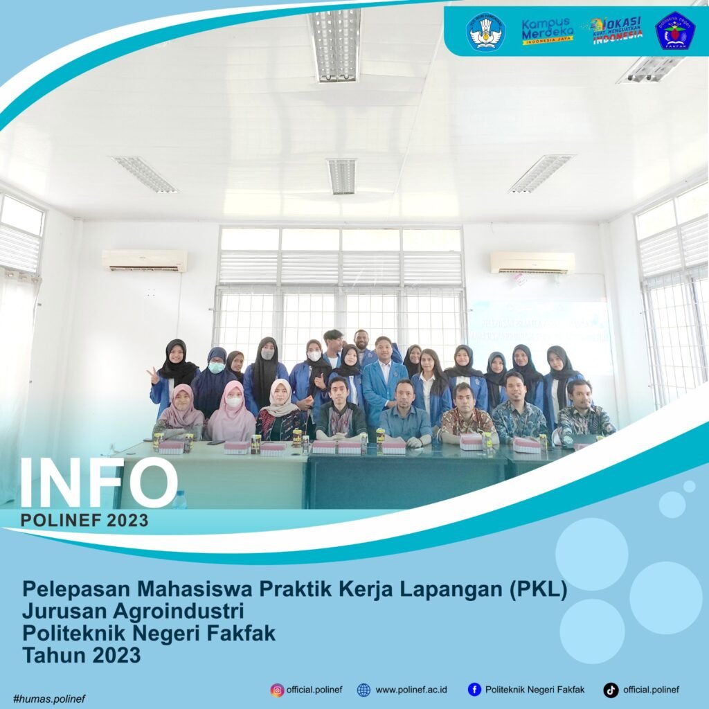 [vc_row][vc_column][vc_column_text] Jumat, 24 Februari 2023 – Salah satu mata kuliah yang harus ditempuh oleh mahasiswa jurusan Agroindustri semester 6 adalah Praktik Kerja Lapang (PKL) di industri terkait agroindustri. Saat ini, jumlah mahasiswa PKL jurusan Agroindustri yang berangkat berjumlah 14 orng. Tujuan dilaksanakannya PKL yaitu sebagai media pengembangan mahasiswa yang lebih riil di lapangan. Mahasiswa […]
