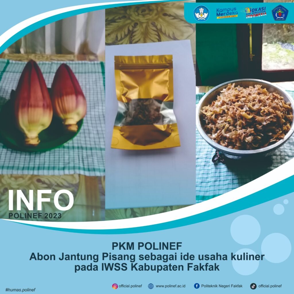 Salah satu Pengabdian kepada Masyarakat dosen Politeknik Negeri Fakfak dalam mengembangkan ide bisnis masyarakat di Kabupaten Fakfak adalah pembuatan abon dari bahan yang tidak biasa seperti jantung pisang. Jika abon biasa dibuat dari daging sapi, ayam, dan ikan, maka dibuatlah abon dari bahan nabati. Ketua PkM, Andi Patimang, S.P., M.Si, menyatakan bahwa kegiatan ini […]