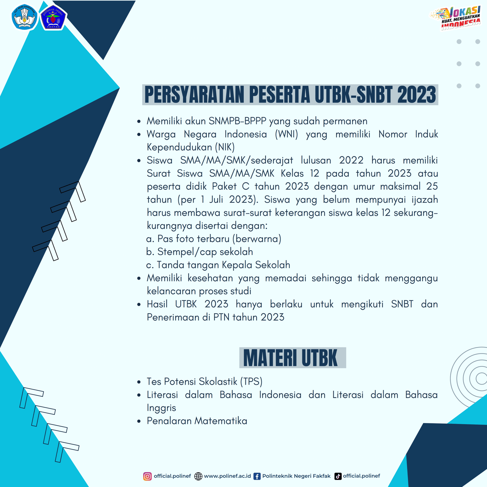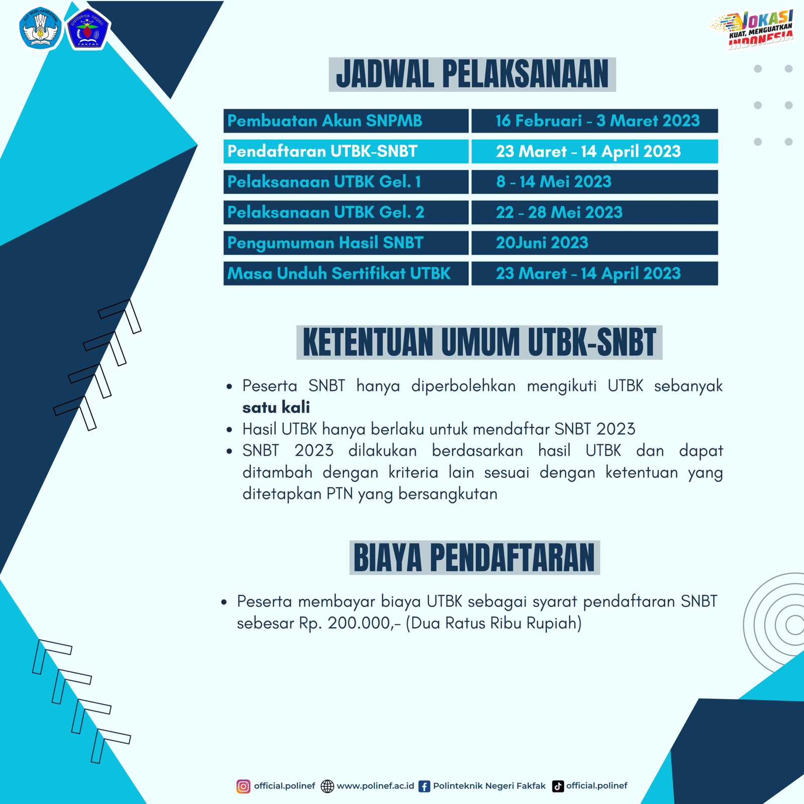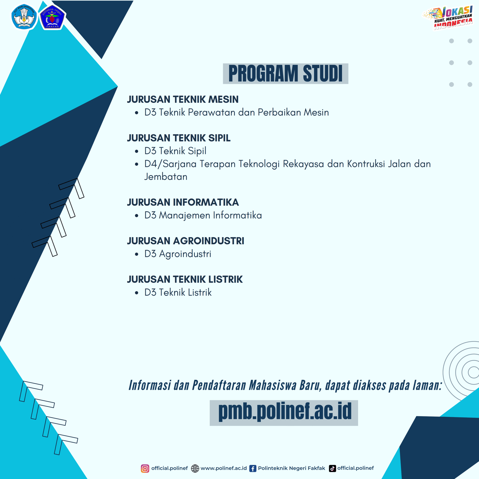 www. polinef.ac.id/ dan media sosial @official.polinef atau https://snpmb.bppp.kemdikbud.go.id dan media sosial @_snpmbbppp