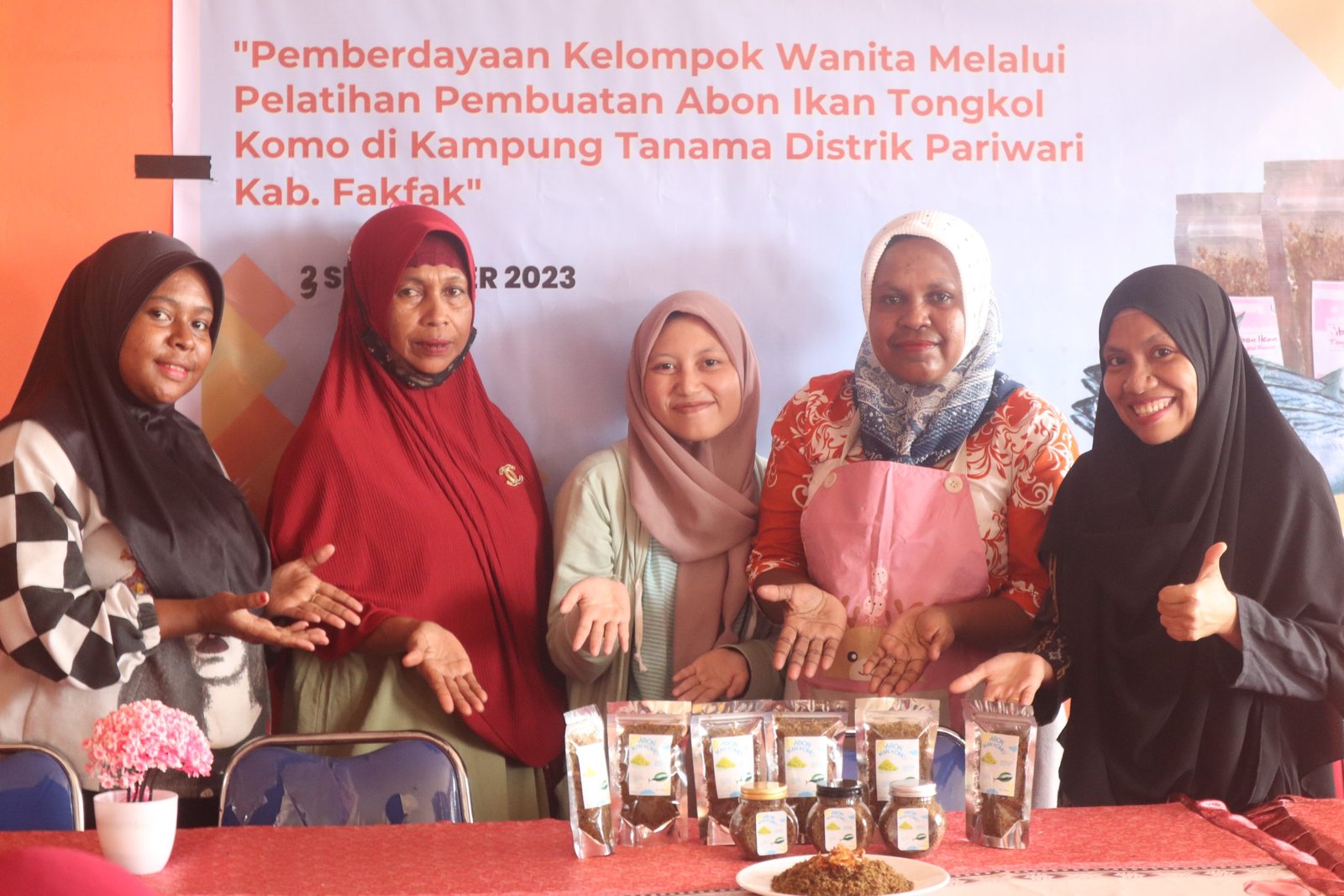 Pemberdayaan Kelompok Wanita Kampung Tanama Kabupaten Fakfak melalui Pelatihan Pembuatan Abon Ikan Tongkol Komo dan Desain Label Kemasan